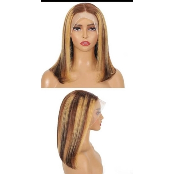 Step into effortless style with our 13×4 Lace Front Bob Wig in the stunning P4/613 color blend – a rich, dimensional mix of medium brown (P4) and platinum blonde highlights (613).